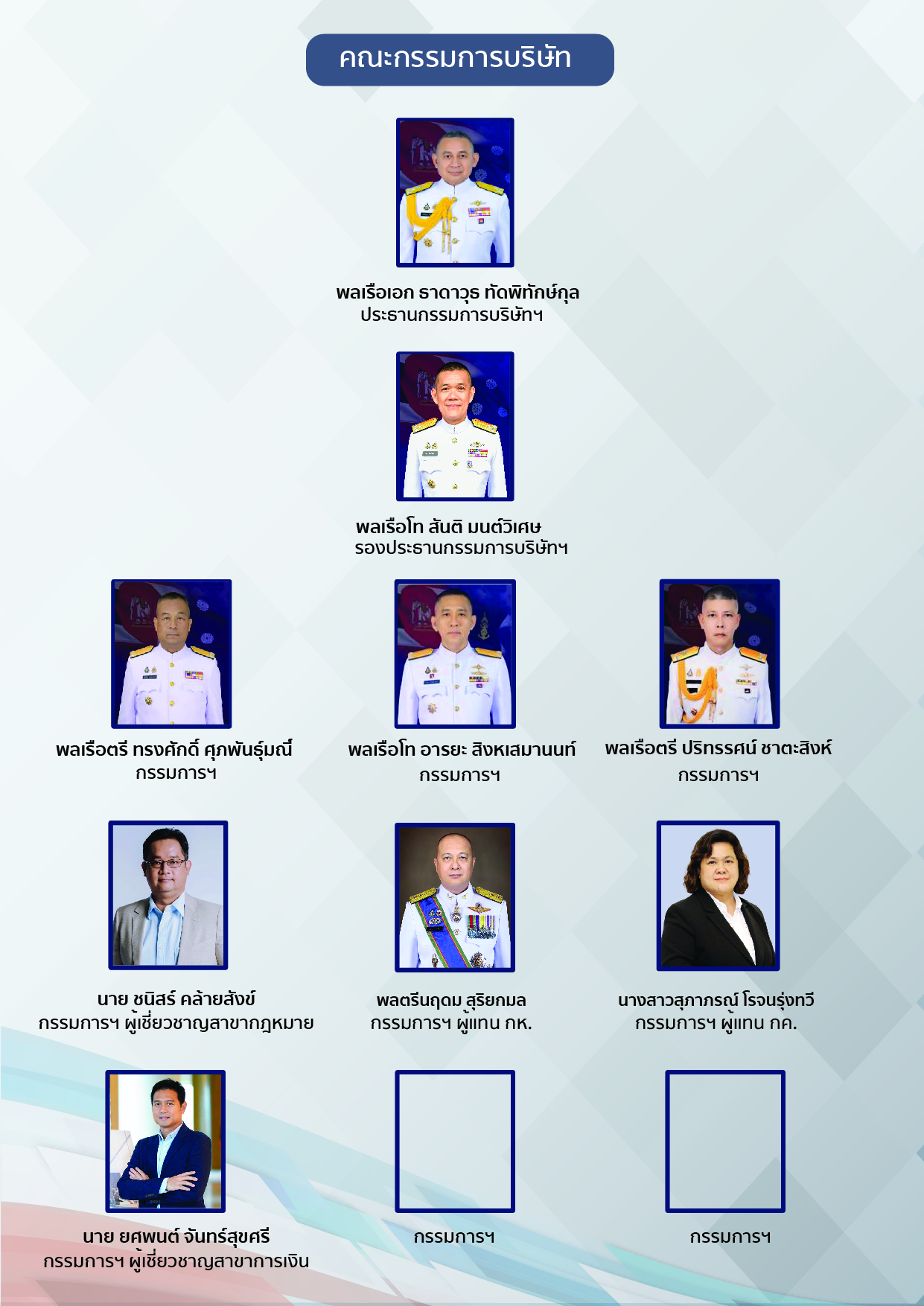 คณะกรรมการบริษัท เผยแพร่เมื่อ: 13 พฤศจิกายน 2562 เขียนโดย ธีรวุฒิ สมบูรณ์สุข ฮิต: 10006 หมวด: Uncategorised